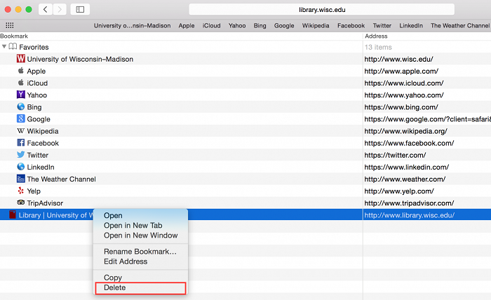 To delete Safari bookmarks on Mac: